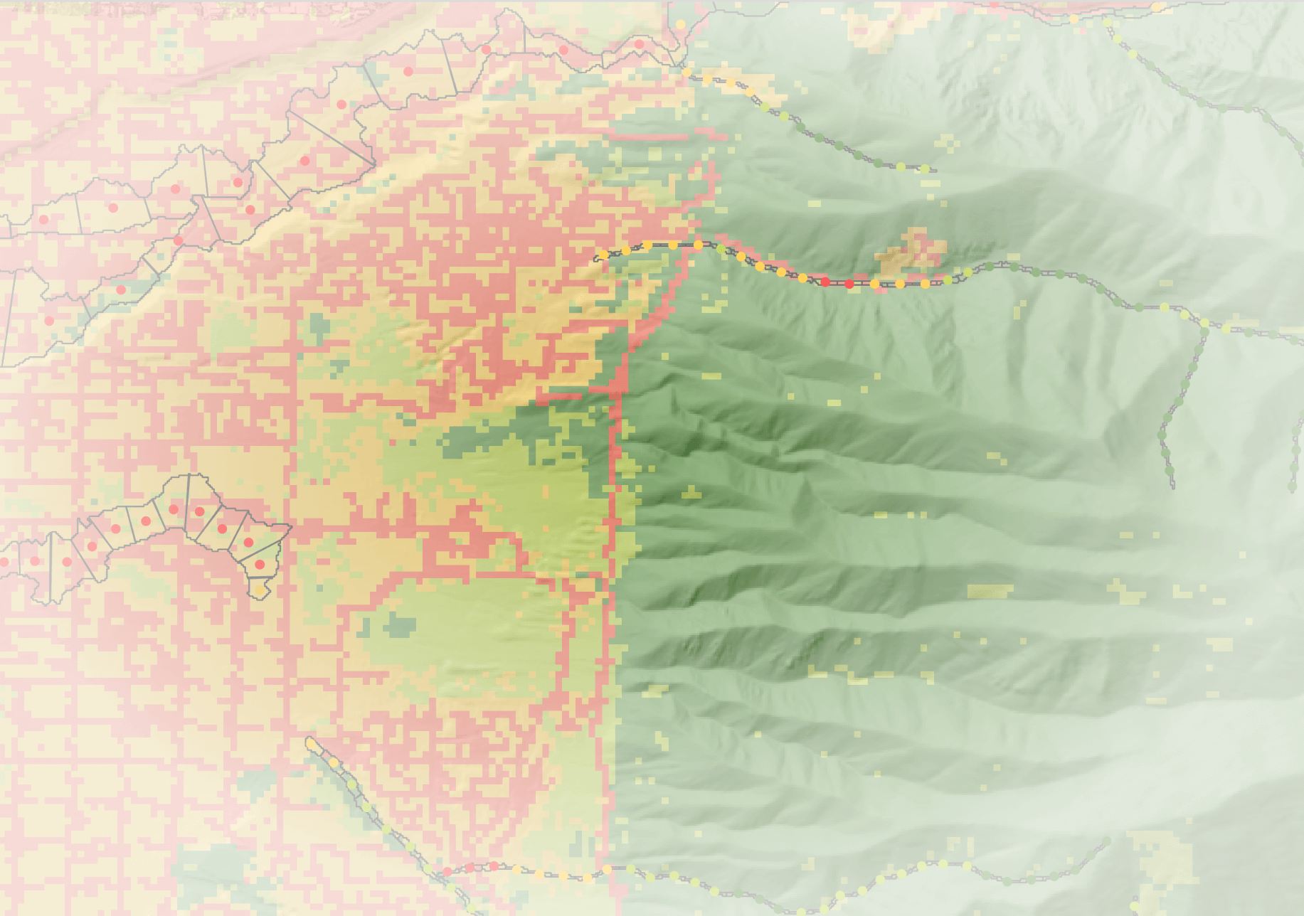 The Anthropogenic Context tool combines geospatial datasets of anthropogenic features (roads, railroads, canals) and land cover classification with hydrography and the riverscape extent (valley bottom) to provide a comprehensive view of the potential human impacts on riverscapes. The tool is designed to help researchers and resource managers understand the potential constraints as well as opportunities for restoration and conservation by identifying areas where human infrastructure may be impacting aquatic and riparian ecosystems. The tool is also designed to help identify areas where restoration and conservation efforts may be most effective by identifying areas where human infrastructure is not present or is less intense. The outputs of this tool also feed into the BRAT and RCAT models.